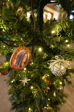 聖家族や羊飼い、博士、天使たちのイラストを額縁ふうにレイアウトしたオーナメントも制作。